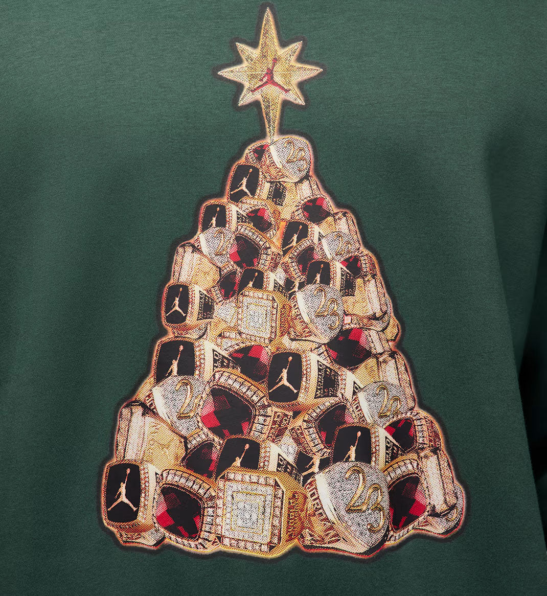 Jordan Brooklyn Fleece — Midnight Green/Black wraps you in cozy midweight fleece that’s smooth on the outside and brushed soft on the inside. Designed in a classic fit, it delivers warm, easy comfort with a festive AJ11-inspired graphic featuring a tree of gold rings.
