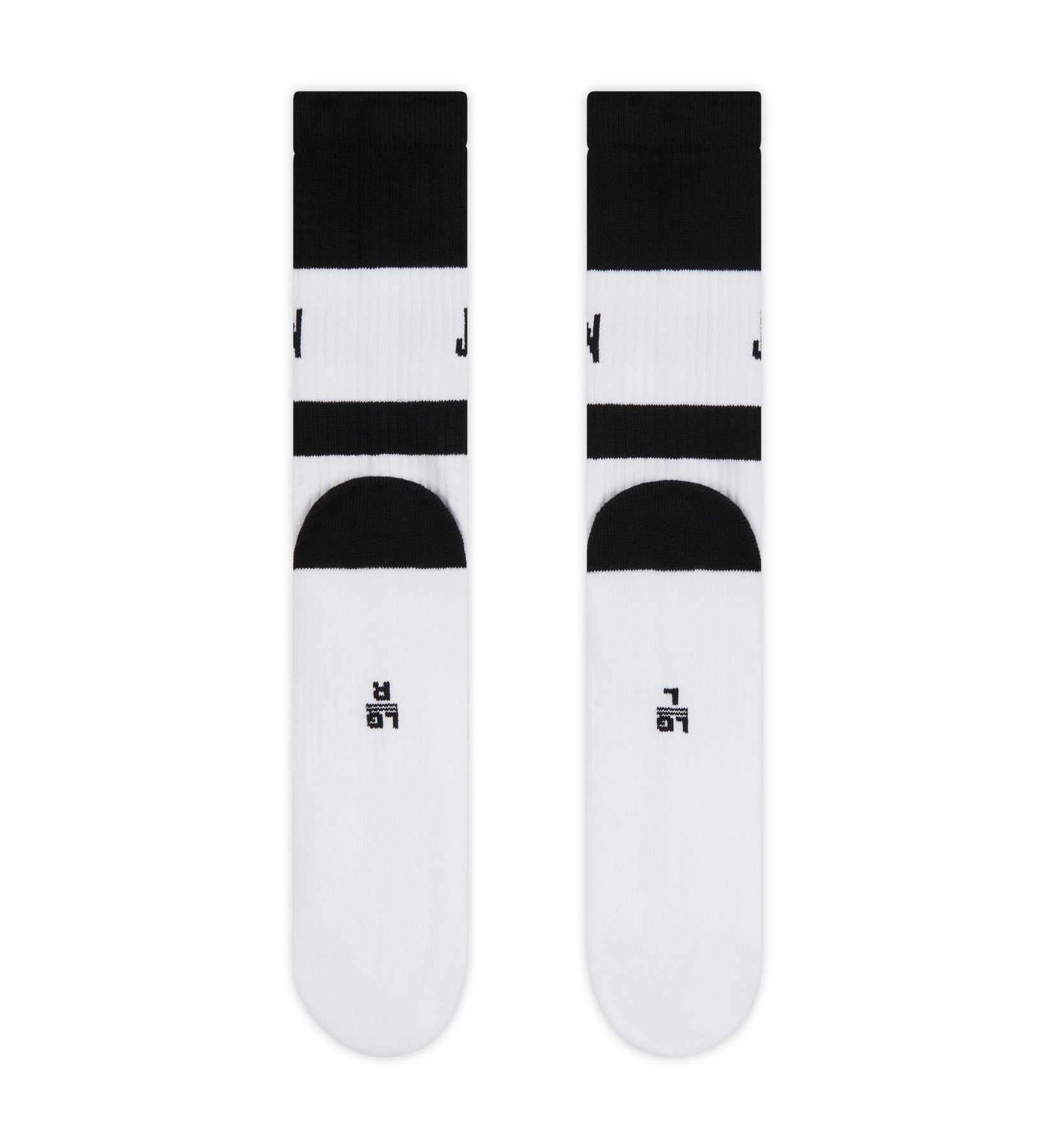 Jordan Cushioned Crew Socks — White/White/Black keep you locked in with comfort and support whether you’re training, hooping, or on the move. Soft, cushioned zones under the forefoot and heel help absorb impact with every step, while a supportive band around the arch delivers a snug, secure feel. Finished in a clean white crew silhouette with subtle Jordan branding, they’re an easy everyday essential.