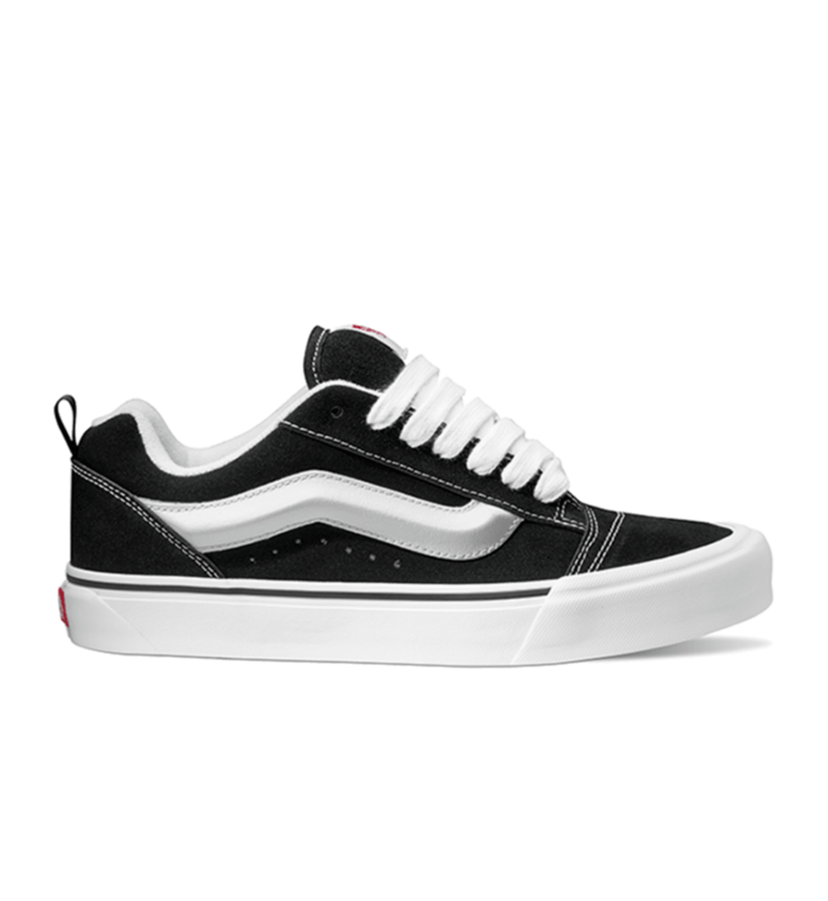 Vans Knu Skool Shoe – Black/True White brings unapologetic ’90s attitude back to the forefront with an oversized, chunky silhouette rooted in Vans heritage. Originally introduced in 1998, this reissued low-top pairs bold proportions, puffed details, and premium suede with the brand’s iconic vulcanized sole. Designed for everyday wear, it blends retro style with durable construction and classic comfort.