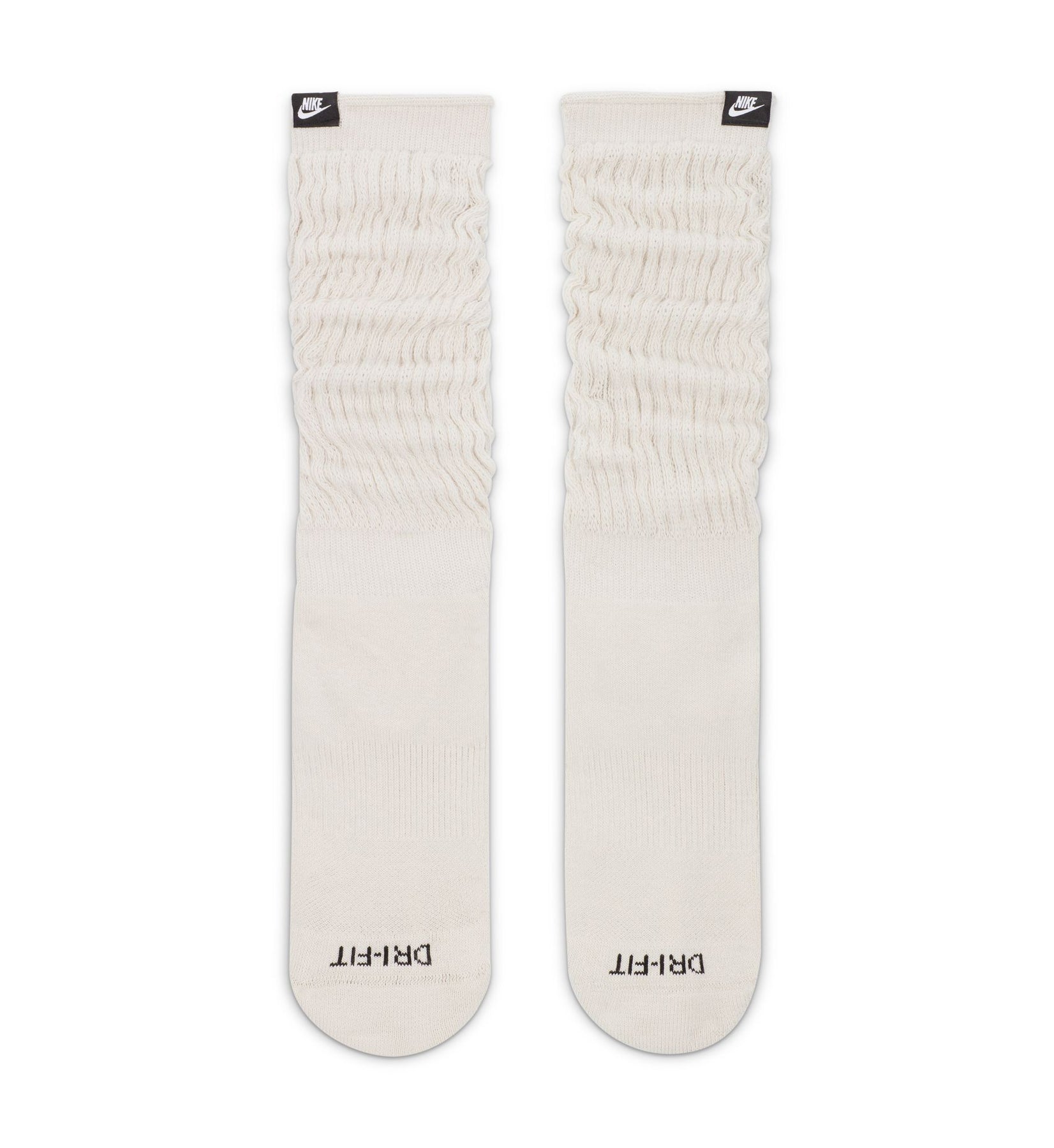 Nike Everyday Plus Slouchy Cushioned Crew Socks (1 Pair) — Light Bone/Black bring back that vintage, scrunched-up sock look with modern comfort built in. Designed with extra-lengthened ribbing so you can style your slouch just how you like, these crews combine soft cushioning, slouchy retro vibes, and sweat-wicking support for everyday wear.