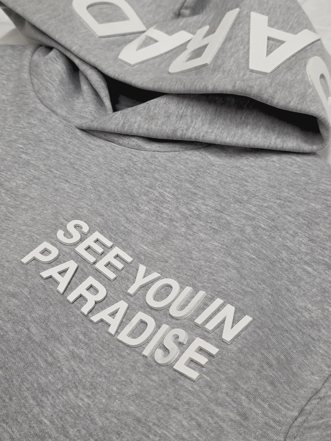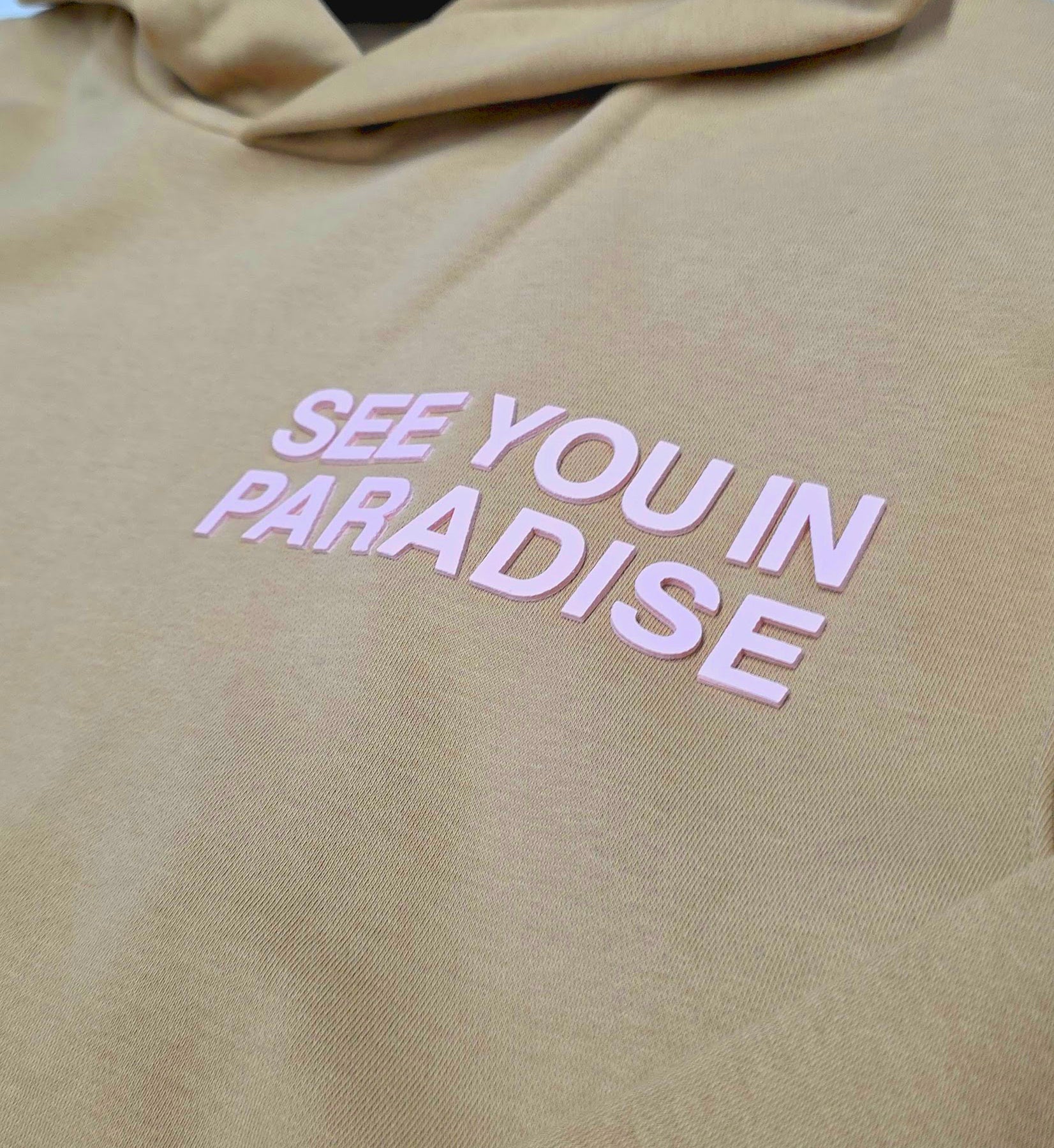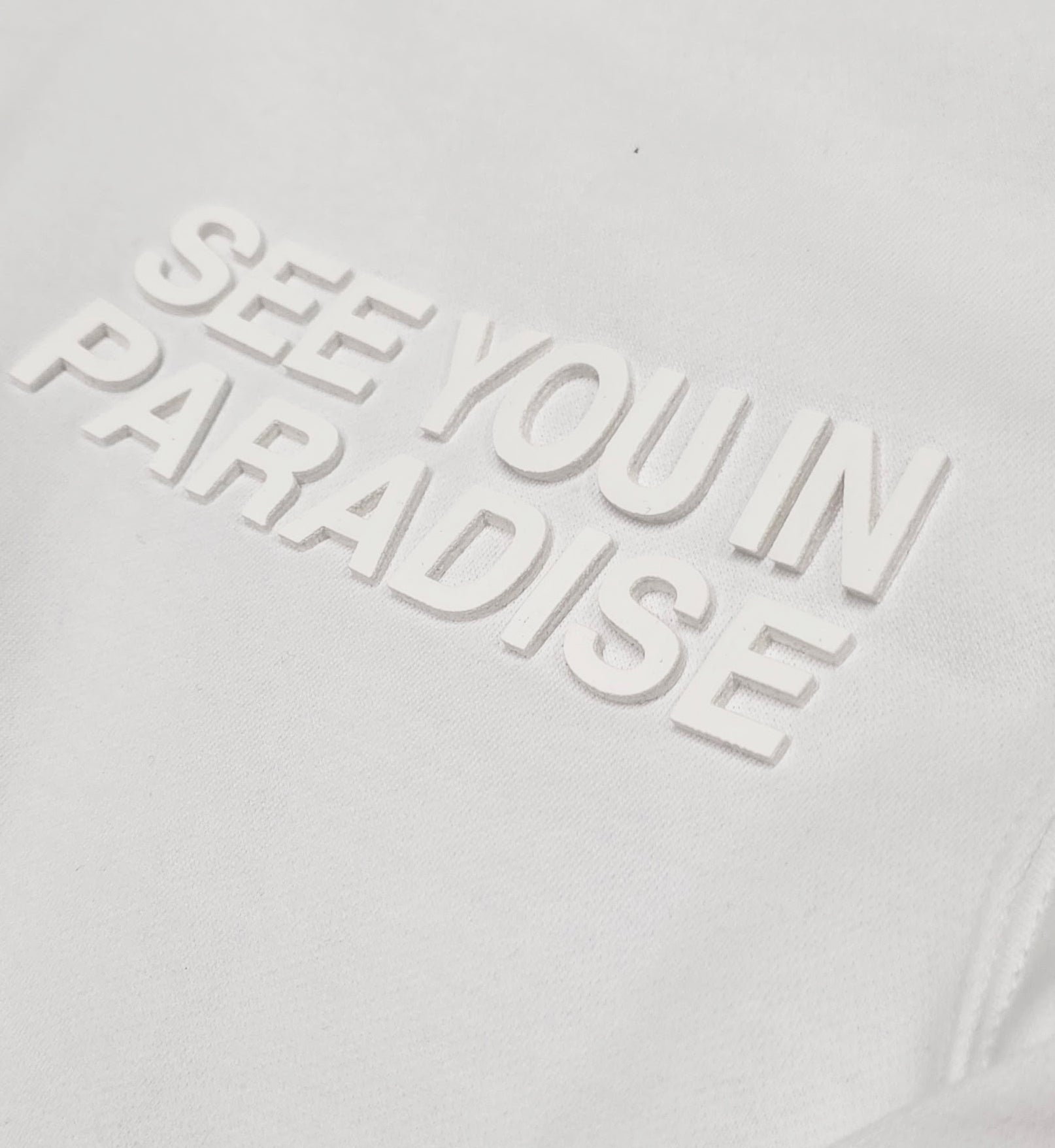 See You In Paradise Tonal Pullover Hoodie delivers elevated comfort in a clean, minimal silhouette. Built from low-shrink combed cotton fleece, it features tonal high-density chest and hood prints for a subtle technical touch. A classic pullover construction, ribbed cuffs and waistband, and a front kangaroo pocket complete the look with everyday versatility and a smooth hand feel.